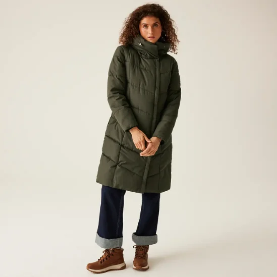 Regatta Nurie Quilted Jacket in Olive is the best duvet coat one could have during the winter season. Regatta, the brand known to make the outdoors accessible, has balanced the high-street fashion with high-performance warmth in this longline puffer.