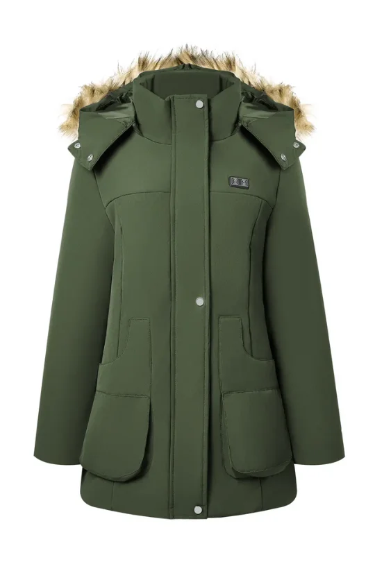 Mid-Length Hooded Coat with USB Heating Function